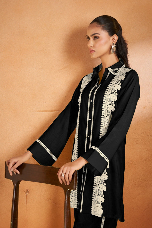 Jade Black Lace Detailed Co-ord Set with Shirt Collar