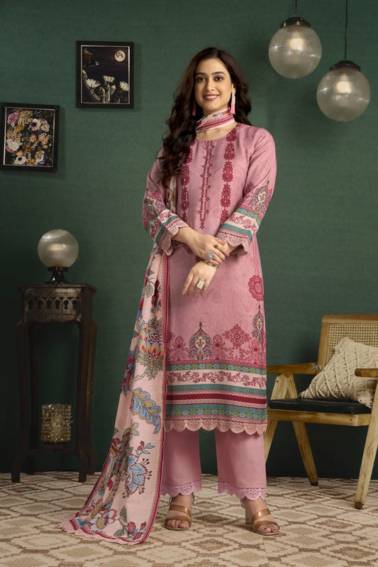 Pink Festive Wear Women’s Ethnic Printed Straight Kurta Set with Dupatta