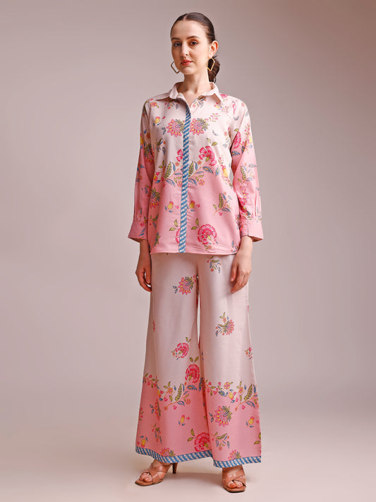 Blush Pink Floral Printed Co-ord Set with Shirt Collar