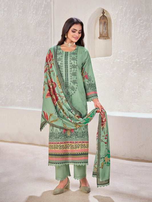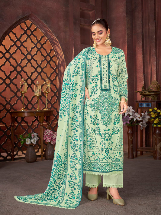 Mint Green Printed Suit with Intricate Motifs & Dupatta