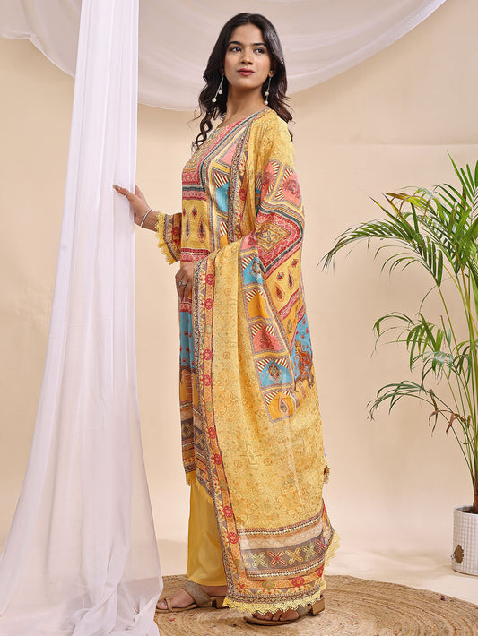 Vibrant Yellow Multicolor Printed Suit with Dupatta