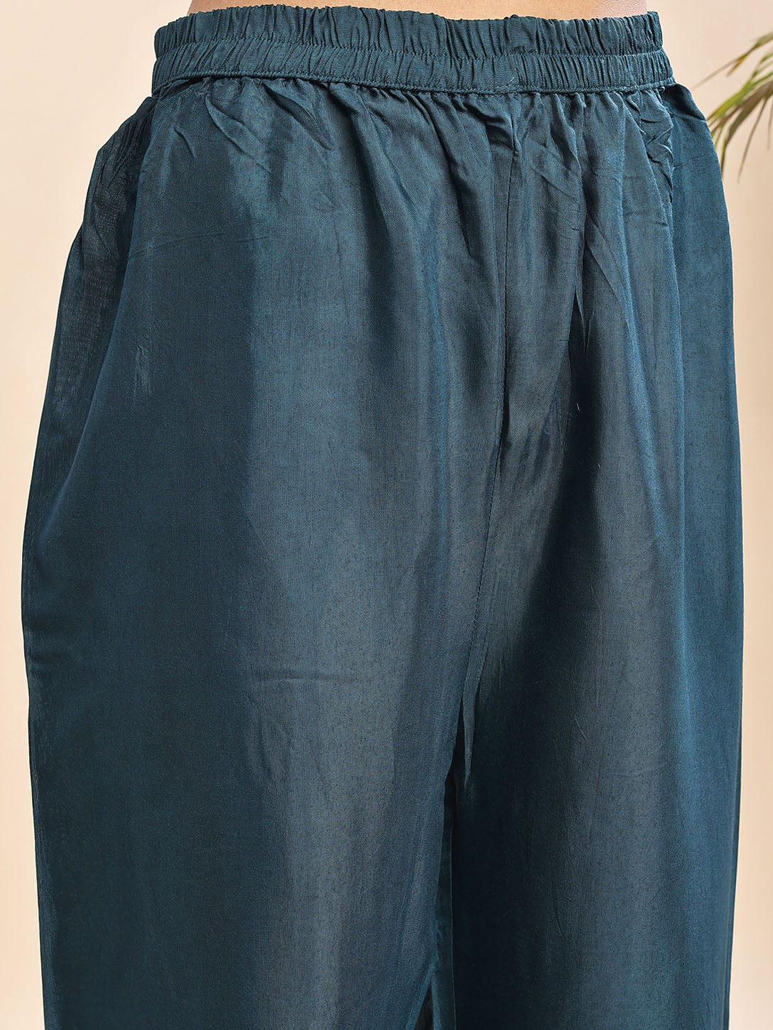 Women's Grey & Teal Ethnic Printed Suit – 3 Piece Traditional Ensemble